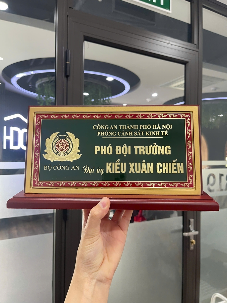 Biển Chức Danh Công An Phủ Keo Nhũ Vàng Mặt 12x25cm