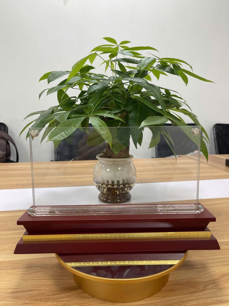 Biển chức danh mica đế gỗ tam cấp có cấu tạo gồm 2 phần: